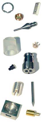 lenses, needles, valves, nozzle tips, bushings, sleeves, and